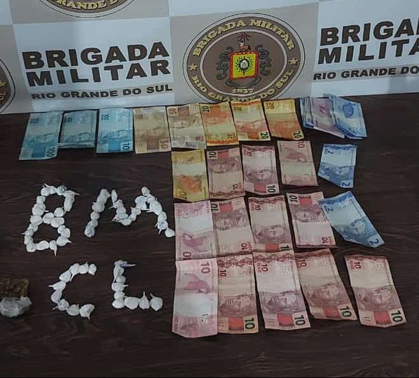 A guarnição da Brigada Militar suspeitou da ação, por ser um ponto conhecido por venda de entorpecentes. Então abordou ambos, localizando no bolso da bermuda de um deles oito buchas de cocaína e uma porção de