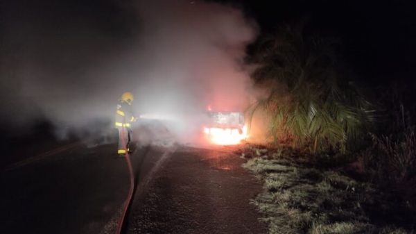 Uma caminhonete VW Saveiro foi totalmente consumida pelo fogo durante a madrugada de quarta-feira, dia 21, por volta da 00h45, na BR 158 em Condor.