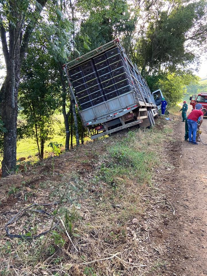 Na madrugada dessa terça feira 27 no interior do município de Cruzaltense ,precisamente na comunidade da Linha 13 , o condutor de um caminhão carregado com frangos , perdeu o controle saiu da pista e colidiu em árvores. O motorista de 25 anos ficou preso as ferragens ,corpo de bombeiros voluntários foram acionados as 4:30 da manhã, prestaram os primeiros socorros ,sendo necessário o auxílio do grupo de resgate de Erechim .O motorista consciente com fratura nas pernas foi removido ao hospital municipal municipal de Campinas do Sul .