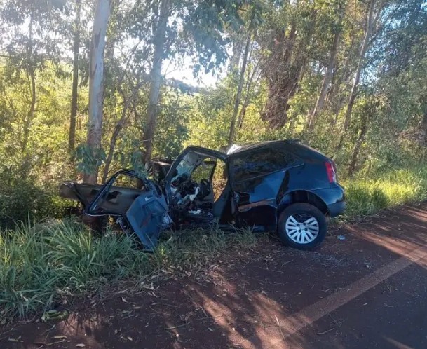 Por volta das 7:30h de hoje, 05, um veículo Wolksvagem Gol saiu da pista vindo a se chocar contra as árvores da beira da rodovia.