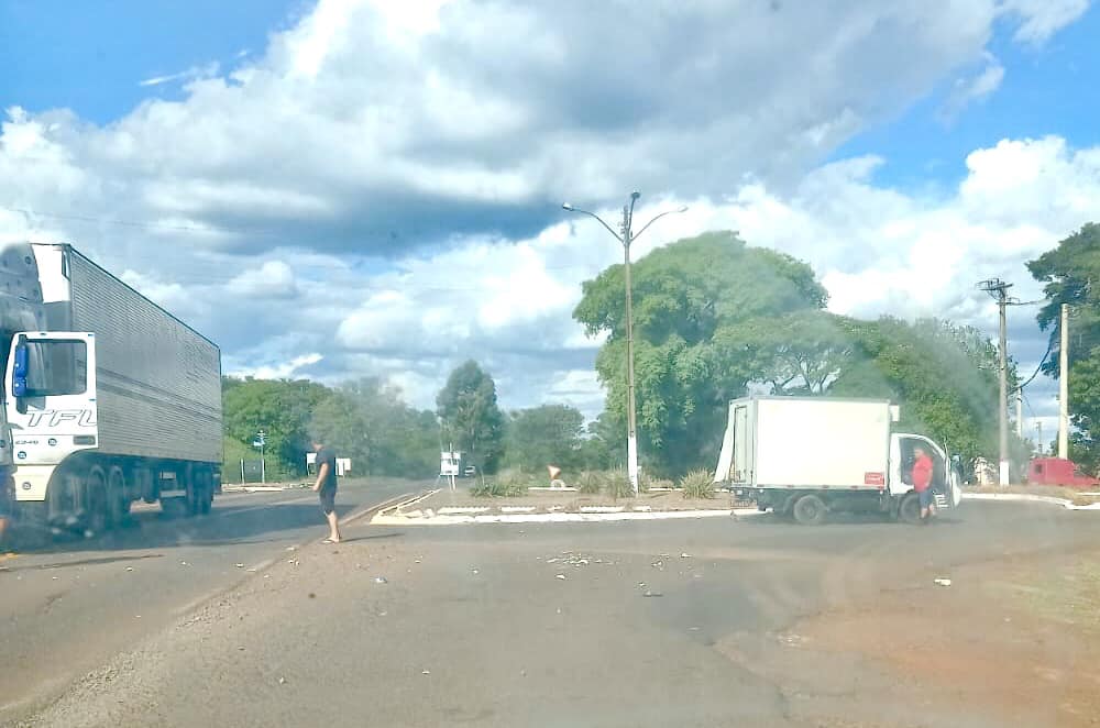 Acidente por volta das 16:30min, na BR 285 no trevo do Complexo Jaime Caetano Braun, envolvendo um caminhão furgão e uma carreta.