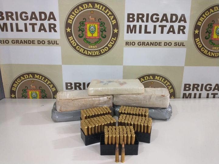o mesmo adentrou em uma estrada vicinal, em direção à localidade de Linha Dona Helena, interior do município e os policiais notaram que o condutor se desfez de um objeto pela janela do veiculo. A equipe realizou a abordagem, sendo identificado o condutor. Ao retornar ao local onde o mesmo dispensou o objeto, foi localizada uma sacola contendo 5 tijolos de substância entorpecente, sendo 3 de cocaína (3.066,53 g) e 2 de crack (2.116,90 g), e 5 caixas de munição calíbres 5.56(totalizando 242 Munições). Mediante os fatos, foi dada voz de prisão ao abordado, o qual foi conduzido ao hospital para laudo médico e, posterior, à Delegacia de Polícia de São Luiz Gonzaga para registro.