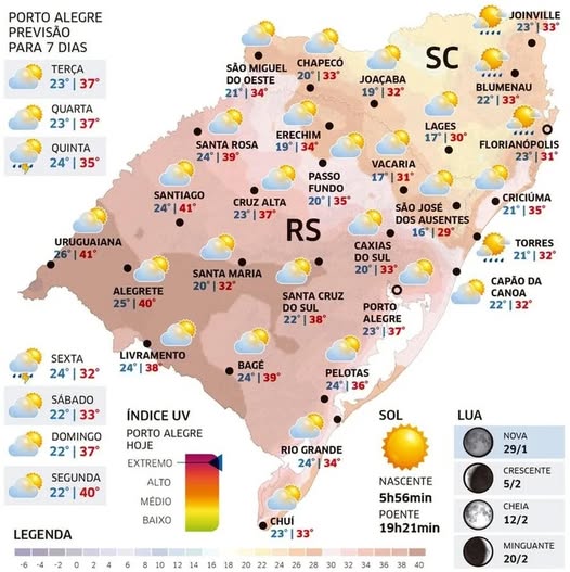 Terça-feira será de calor extremo no Rio Grande do Sul