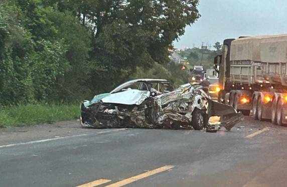 Motorista morre após clisão frontal de automóvel com duas carretas, em Cruz Alta
