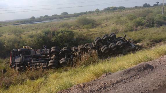 Caminhão tomba na BR-472 e condutor é preso após realizar teste do ba...