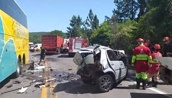 Gravíssimo acidente envolve ônibus, carreta e carro de Tenente Portela
