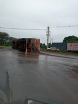Carreta tomba no trevo principal da BR 285 em São Luiz Gonzaga