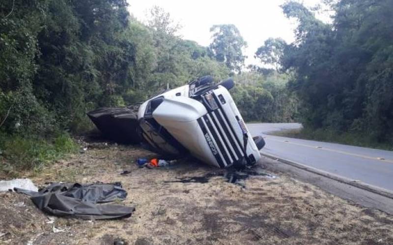 Carreta com produtos em MDF tomba na ERS-324 entre Marau e Passo Fundo