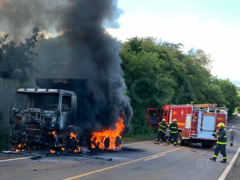 Caminhão pega fogo na ERS 342, divisa de Catuipe/Independência