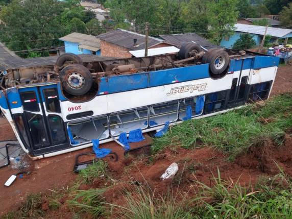 Ônibus capota e deixa oito feridos na ERS-324 em Passo Fundo