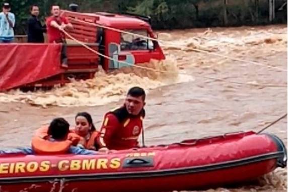 Família é salva por bombeiros após caminhão ser arrastado por corrent...