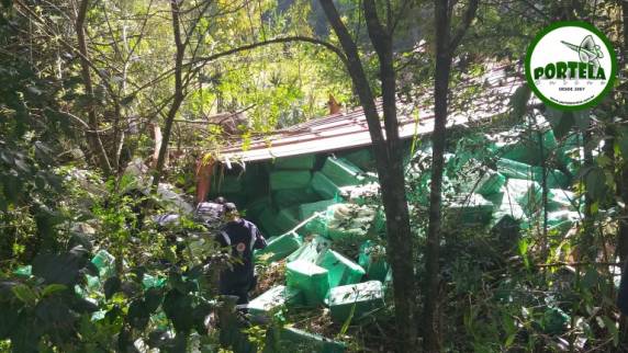 Caminhão com cigarros contrabandeados tomba na RSC-472 em Tenente Por...