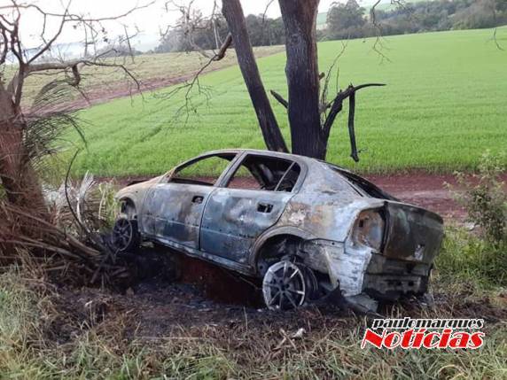 Após acidente de trânsito veículo é consumido pelo fogo em Tucunduva