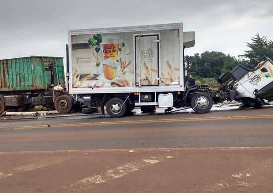 Grave acidente envolveu dois caminhões na BR-468, no trevo de acesso ...