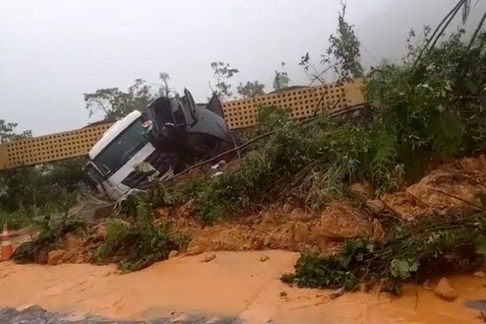 Bombeiros buscam desaparecidos após deslizamento arrastar 10 carros e...